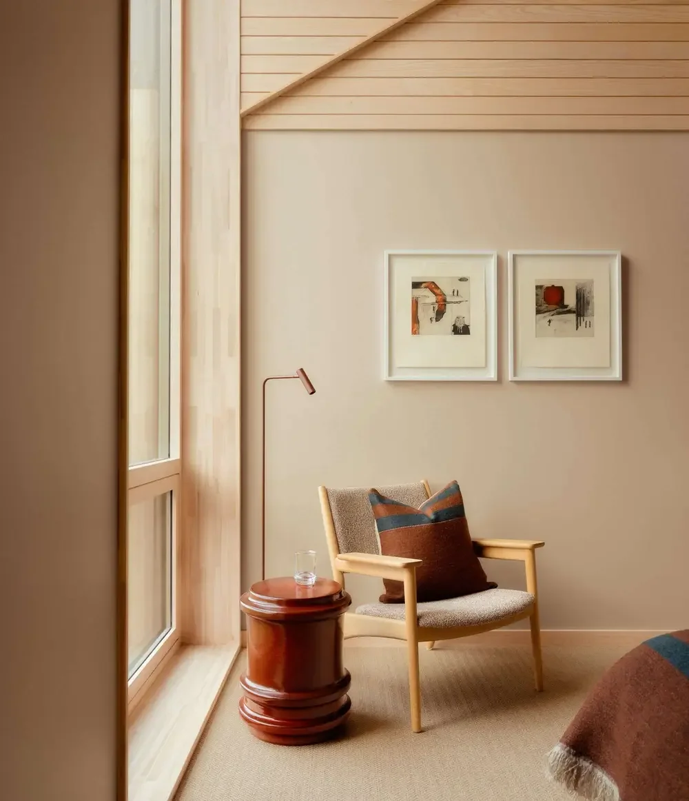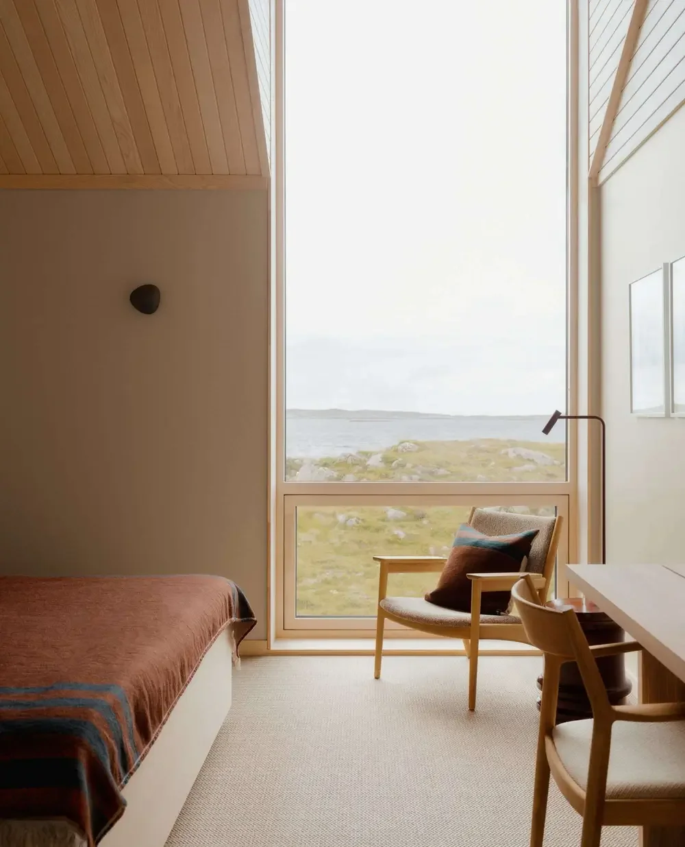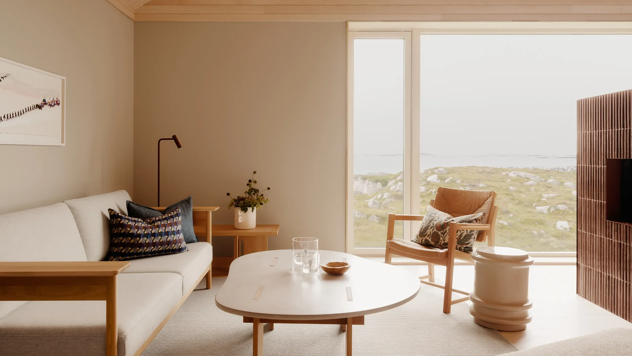 Designed by Vardehaugen Architects, the buildings draw inspiration from the region’s coastal heritage — referencing boathouses, fish racks, and working waterfronts — while expressing a contemporary architectural language. Volumes are broken down and placed gently in the terrain, allowing light, wind, and views to shape the experience.The interior concept, developed by Bonaparte Interiør, continues the same philosophy. Calm, tactile spaces are created through honest materials, muted colours, and carefully crafted details. The interiors are not meant to compete with the landscape, but to frame it — offering warmth, shelter, and stillness.